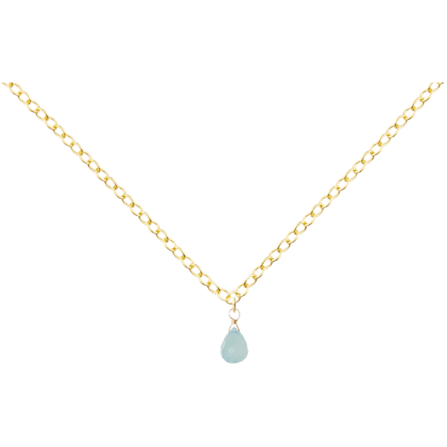ネックレス☆No76 天然石シーブルーカルセドニードロップ ネックレス 14KGFあずきチェーンネックレス40cm 幅約1.5mm