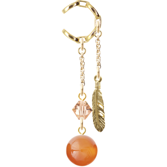 魅力的で個性的なチェーンデザインイヤーカフ天然石カーネリアンとスワロフスキー羽根チャームをお届けします。