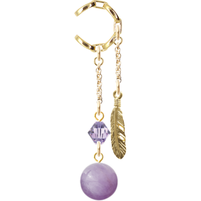 魅力的なチェーンデザインイヤーカフ天然石ラベンダーアメジスト10mm スワロフスキー 羽根チャームをお届けします。