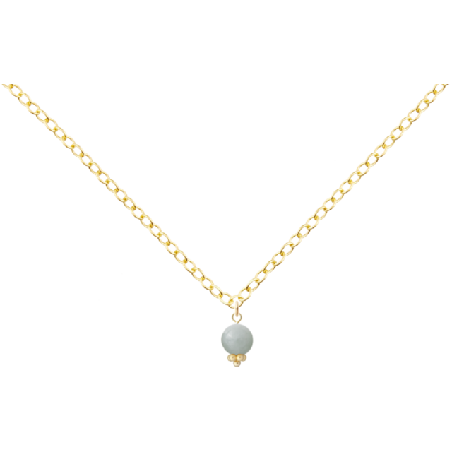 ネックレス☆No95 フラワーパーツ付き天然石ジェダイト8mm ネックレス 14KGFあずきチェーンネックレス40cm 幅約1.5mm
