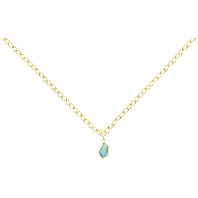 心惹かれる変形ペンタゴンパーツターコイズネックレス 14KGFあずきチェーンネックレス40cm 幅約1.5mmをお届けします。