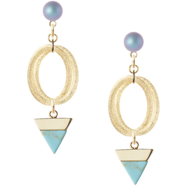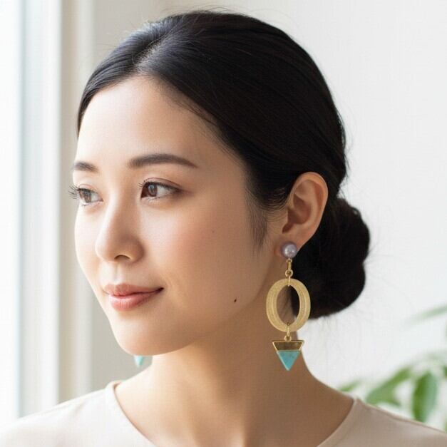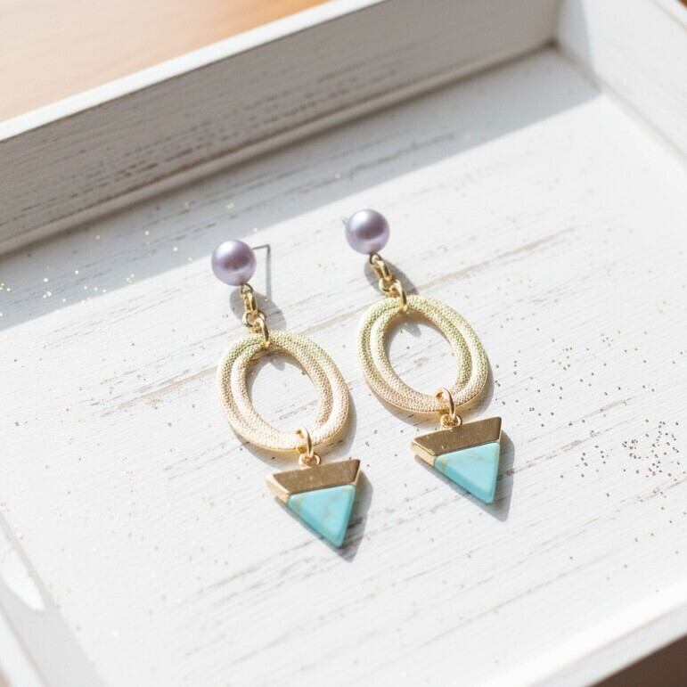 ・柔らかなライトブルーは、さまざまなコーディネートにマッチし、大人の洗練を演出します。逆トライアングルのデザインが、耳元をおしゃれに彩ります。