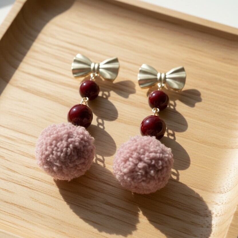 アメリカンチェリーパールの深い艶とピンクファーボールの愛らしさが、あなたのスタイルに華やさを添え、シンプルでありながらも目を引くアクセントに。さらに、軽やかな着け心地が魅力で、長時間の使用でも快適にお楽しみいただけます。