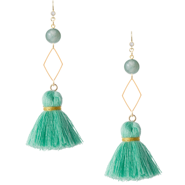 魅力的で洗練されたラインストーンひし形リング 天然石アマゾナイト ミントグリーンタッセル 大人系をお届けします。