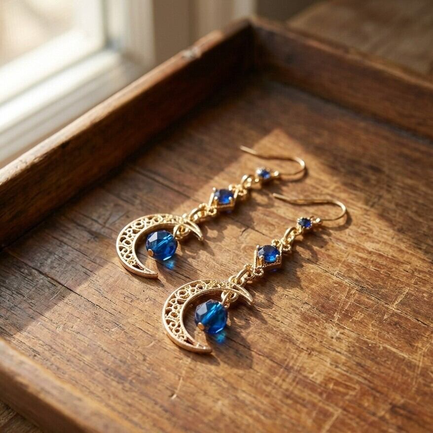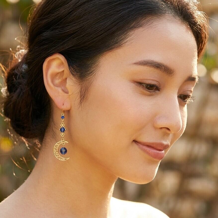 透かしの三日月とカプリブルーのチェコビーズが組み合わさり、あなたのスタイルに爽やかな印象を与え、どんなシーンでも存在感を放ちます。軽やかな着け心地にもこだわり、長時間でも快適にお楽しみいただけます。