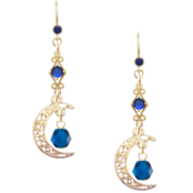 魅力的で洗練された一粒ラインストーンブルーフックピアス ジルコニアブルー 透かし三日月 チェコビーズカプリブルー かわいい系をお届けします。