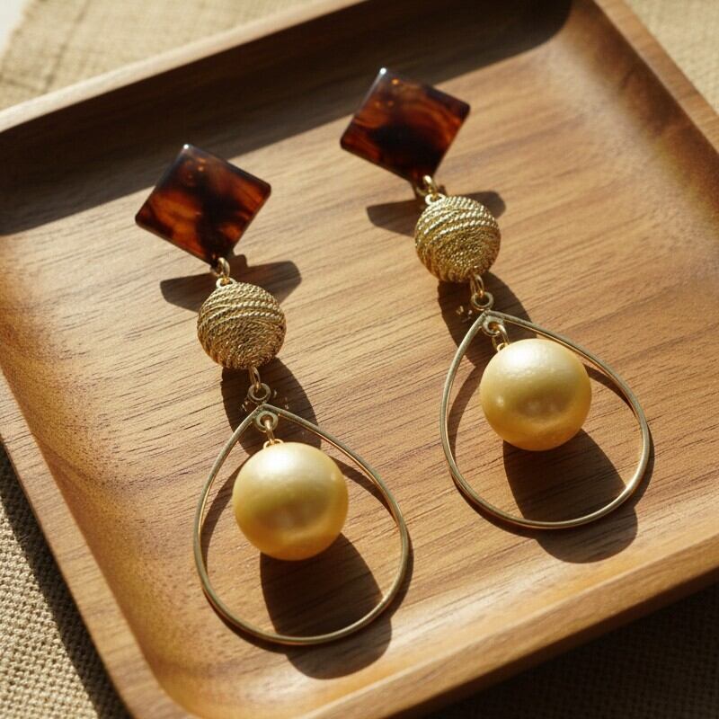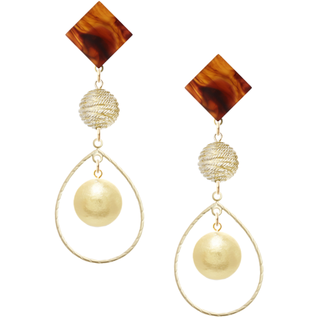 べっ甲スクエアピアス ロープボール フープ コットンパールライトベージュ 大人系をお届けします。