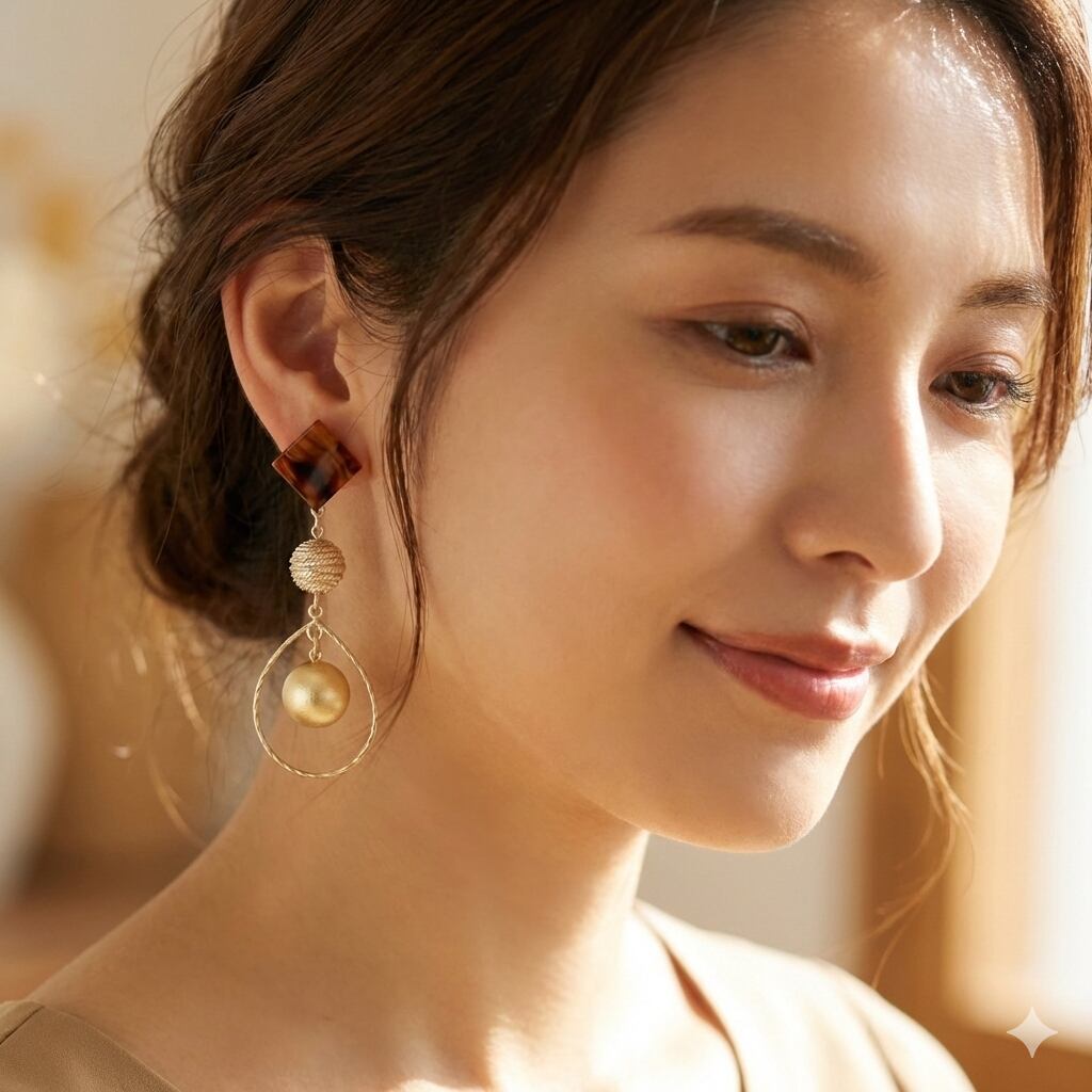 このアイテムは、洗練されたべっ甲柄のスクエアデザインと、柔らかなコットンパールライトベージュの優しい色合いが特徴で、特別な日やカジュアルなコーディネートに大人の魅力を添えます。