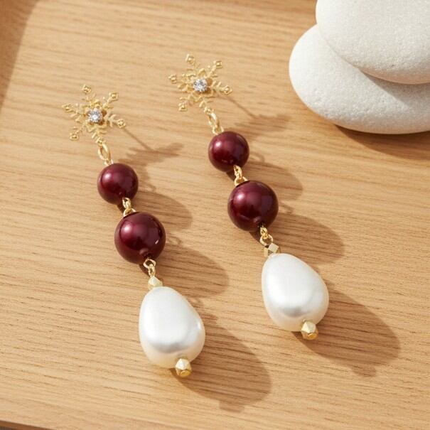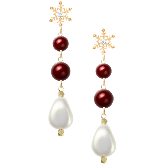 このアイテムは、印象的な雪の結晶デザインと樹脂パールアメリカンチェリー8mm、10mm、さらにユリア樹脂の変形パールナゲットが見事に調和されたデザインが特長です。特別な日や普段のスタイルに清楚で優美な雰囲気をプラスします。