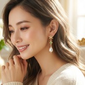 ・透明感あふれるスワロフスキースクエアペリドットとユリア樹脂変形パールナゲットの組み合わせは、特別な日の装いを引き立てるだけでなく、日常使いにもぴったりです。優れたバランスが清楚な雰囲気を醸し出し、女性らしさを引き立てるスタイルに仕上がっています。