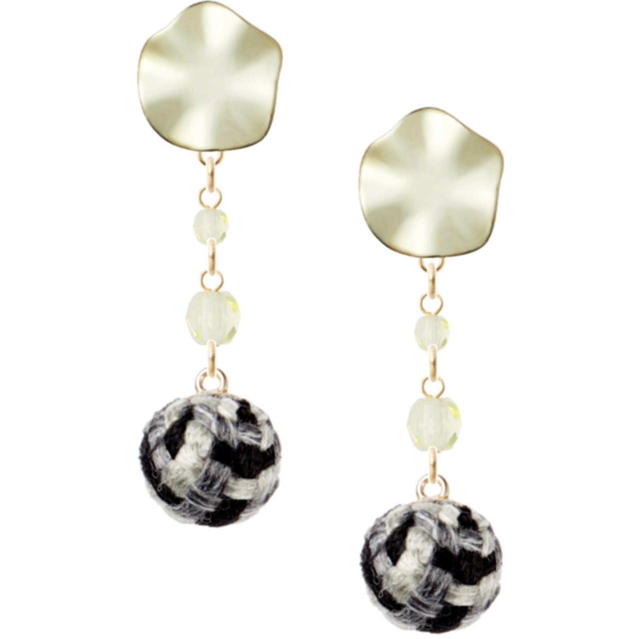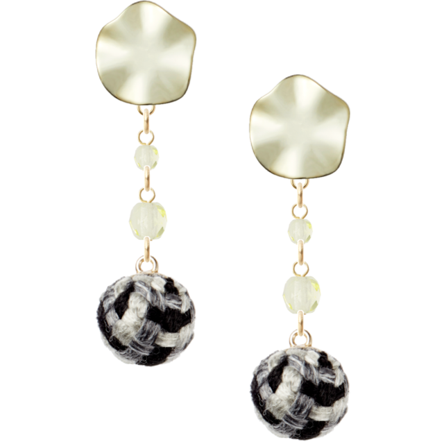 このアイテムは、個性的な変形ラウンドプレートと愛らしいツイードボールチャームの組み合わせが特長です。鮮やかなジョンキルカラーのチェコビーズがさりげなく煌めき、かわいい系のスタイルに抜群のマッチングを実現しています。特別な日やカジュアルなお出かけに、あなたのスタイルに大切なアクセントを添えることでしょう。