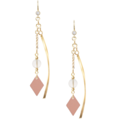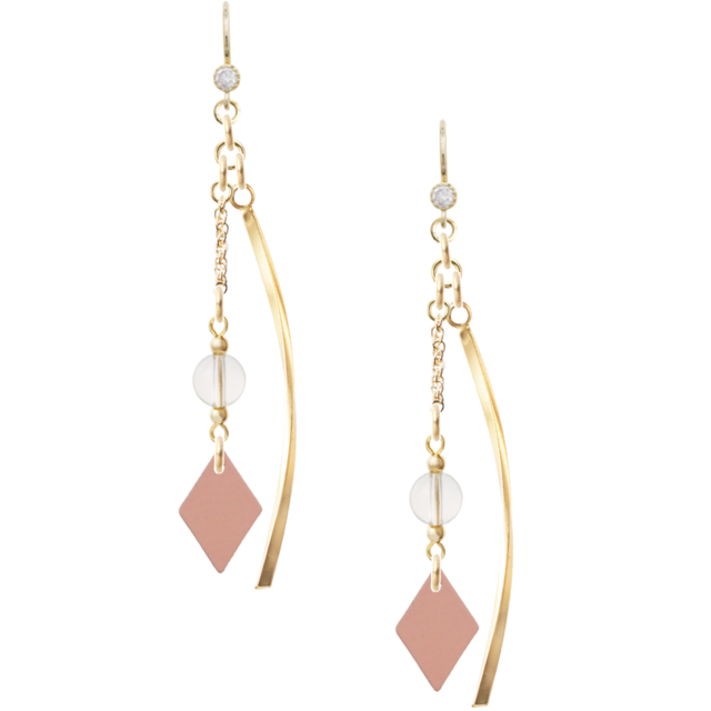 一粒ラインストーンフックピアスクリア ウェーブメタルバー アラビアンクリスタル6mm マットコーティングひし形ピンク 清楚系をお届けします。