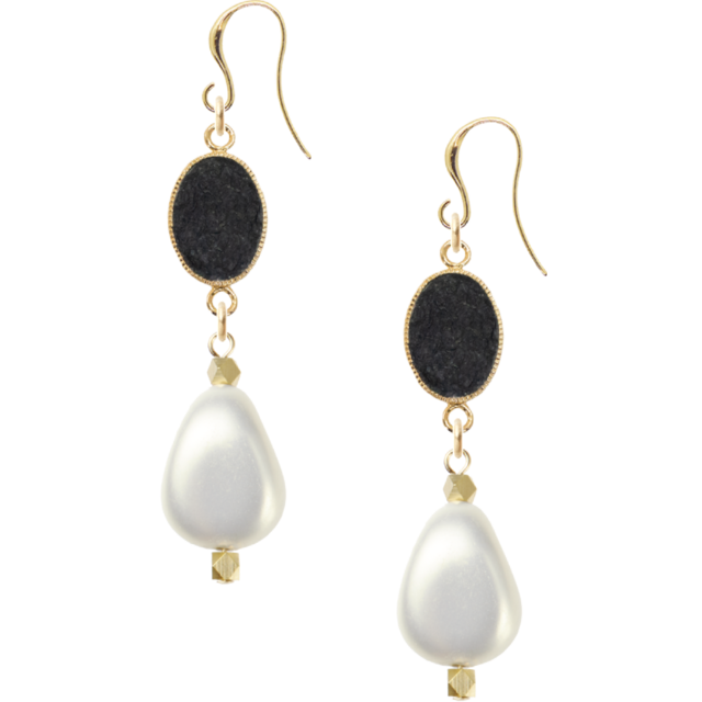 ピアスフック16金メッキ フィッシュレザーオーバルブラック ユリア樹脂変形パールナゲット 清楚系をお届けします。