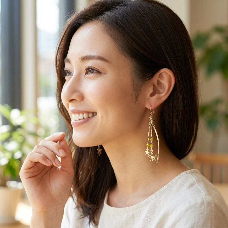 この清楚系のピアスが、あなたの魅力を引き立て、さまざまなシーンでのスタイルに上品さをプラスしてくれることでしょう。軽やかな着け心地にもこだわり、長時間でも快適にお楽しみいただけるアイテムです。