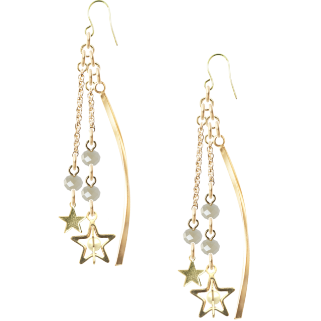 ・オフホワイトのボタンカットガラスビーズと立体スターパールが美しく調和し、特別な装いにもカジュアルな日常にも合わせやすいデザインです。